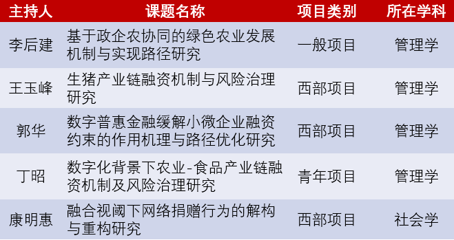 日前,2021年度国家社会科学基金项目和国家自然科学基金项目评审结果出炉,365官网共有6位老师获批立项,分别是:李后建教授、王玉峰教授、郭华副教授、丁昭博士、康明惠博士、李佳珈博士。在国家社会科学基金项目立项中,分别有一般项目1项、青年项目1项、西部项目3项。此外,学院还获国家自然科学基金青年科学基金项目立项1项,详细立项名单如下: