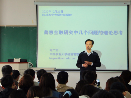 10月22日上午,何广文教授走进本科教学课堂,作了题为“德国合作金融制度及其对中国的启示”与“普惠金融研究中几个问题的理论思考”两场学术报告。报告会上,何广文教授从合作制的特点出发,梳理了德国合作金融的发展历程及其特点,并就“为弱势群体提供的信贷利率反而高?”这一问题同在场师生展开了讨论与交流。随后,何广文教授围绕普惠金融这一主题,详细阐释了普惠金融的概念、农村普惠金融的现状与问题,并就“农户信贷需要依靠熟人社会吗?”这一问题再次同在场师生展开了热烈的讨论。下午,受邀嘉宾冯兴元教授、何广文教授以及beat365官方网站德国研究中心主任蒋远胜教授对2020年德国研究中心的申报课题进行了评审。