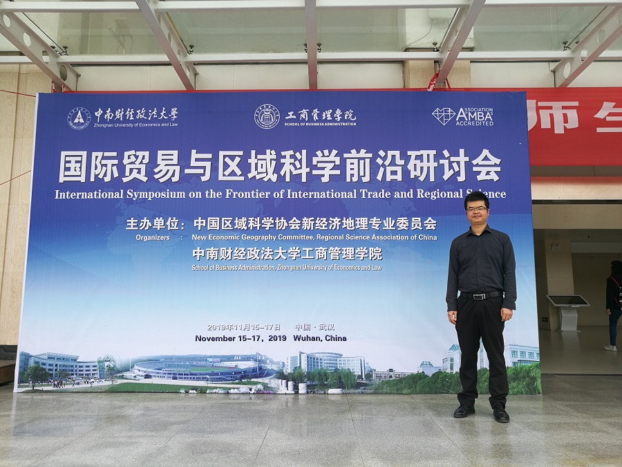 2019年11月15-17日,“国际贸易与区域科学前沿研讨会”在中南财经政法大学召开。此次会议由中国区域科学协会新经济地理专业委员会和中南财经政法大学工商管理学院联合主办,就贸易自由化背景下的空间集聚现象产生的新研究话题展开学术交流。365官网国贸系副主任宋涛应邀参会。