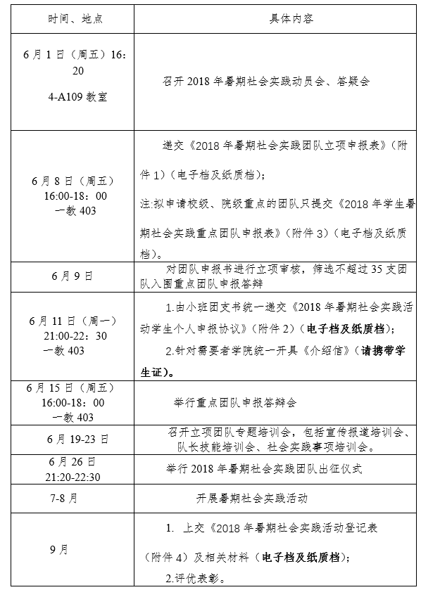 注:具体时间、地点另行通知。请加群662646807,了解2018暑期社会实践相关事宜。