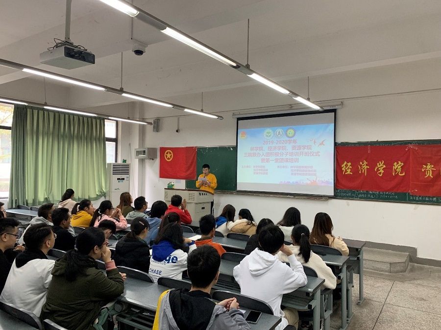 11月15日中午,由365官网和林学院、资源学院3院团委组织部联办的入团积极分子培训开班仪式在4B106成功举行。三学院学生团委副书记、组织部负责同学以及入团积极分子共计46人参与了开班仪式。