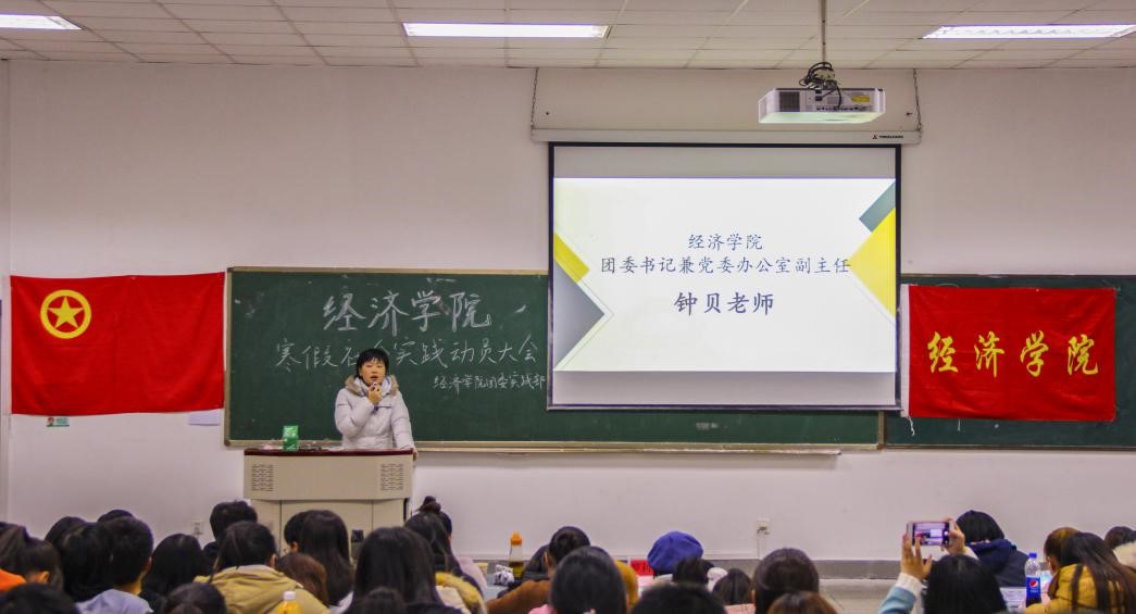12月10日下午,beat365官方网站团委在四教A103教室召开2020年寒假社会实践动员大会,学院团委书记兼党委办公室副主任钟贝老师、党委办罗利娟老师、学生团委副书记何莉颖和220余名团干参加了此次动员大会。