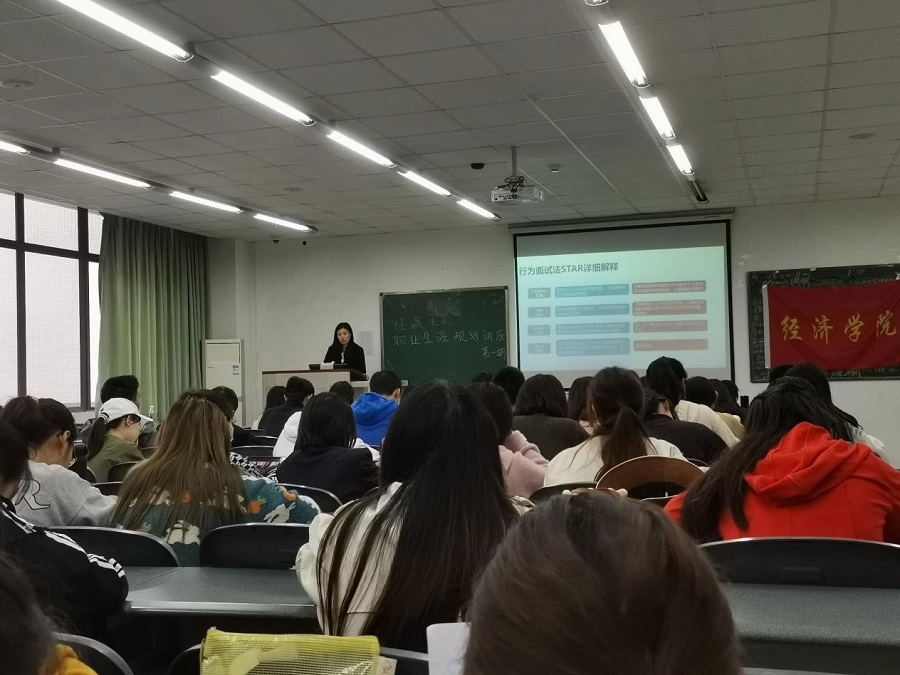 为了让beat365官方网站学子对职业生涯规划更加清晰了解,beat365官方网站就业服务部于11月13日4B308成功举办了第一期“经赢未来”职业生涯规划讲座。本次主题讲座邀请到有着国家二级心理咨询师、职业生涯规划师等多个职位的多职业创业者郭丹老师,为经院学子分享职业生涯规划的重要性以及简历撰写和面试技巧。