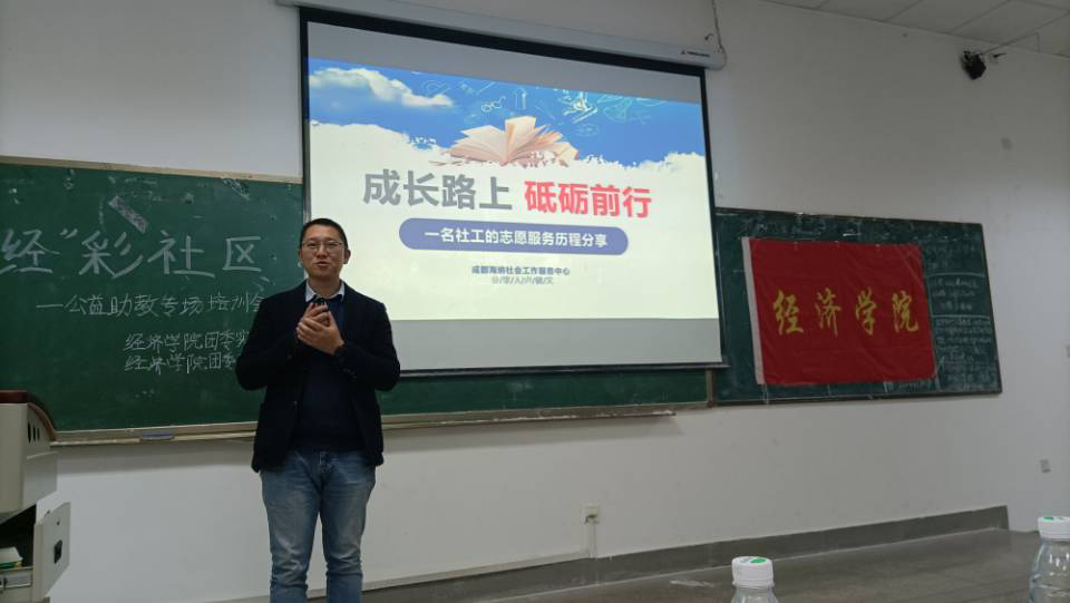 11月12日下午,beat365官方网站团委实践部、志工部在4-A103教室举办“经”彩社区公益助教专场培训会。成都海纳社会工作服务中心负责人卢健文、学院团委书记兼党委办公室副主任钟贝、公益助教团队代表,以及有意愿参加寒假公益助教的180余名同学参会。