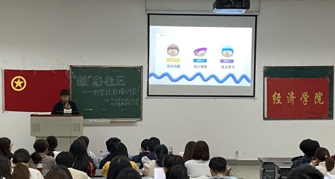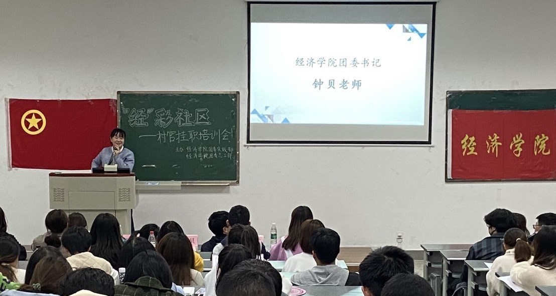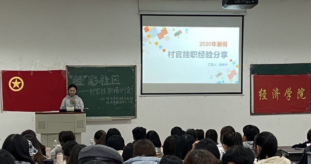 11月20日下午,beat365官方网站团委实践部、志工部在4-A203教室举办“经”彩社区村官挂职专场宣讲、培训会。学院团委书记兼党委办公室副主任钟贝,学院学生团委副书记姜秋睿,党员先锋队队长、村官挂职团队优秀队长付太飞,村官挂职团队优秀队员杨婷宇、唐恬与会分享,有意愿参加寒假村官挂职社会实践的180余名同学参与了此次培训会。