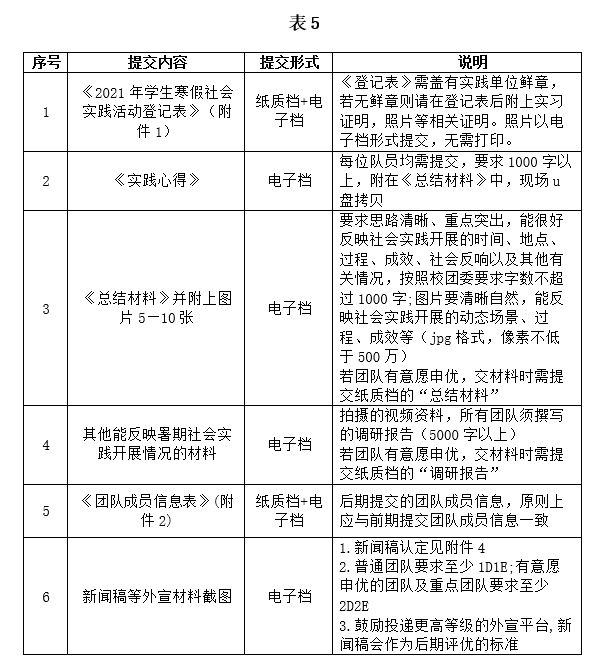 2.提交电子档材料时,请将上述材料的原始文件放入同一压缩包中,命名格式为:【申优/不申优】+队长姓名+联系方式。注:请在该压缩包中分别新建名为“登记表” “实践心得”的子文件夹,将团队同学的登记表、实践心得等材料放入对应的子文件夹中。