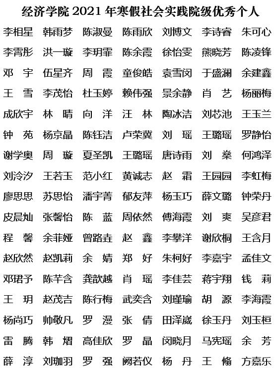 根据校团委《关于开展2021年学生寒假社会实践总结表彰的通知》,经过个人自荐、学院相关部门评议,团队申请、答辩,学院团委评审,拟表彰以下团队和个人,现予公示如下。