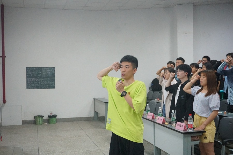 活动最后一个环节,由农学院学生会副主席杨杰带领在场团员们重温入团仪式,现场同学纷纷庄重起立,右手握拳举起,跟随杨杰庄严宣誓:“我自愿加入中国共产主义青年团,坚决拥护中国共产党的领导……”坚定的话语同坚毅的面容展现出在场每一位团员爱国爱党的意志,展现出青年人独有的朝气与自信。