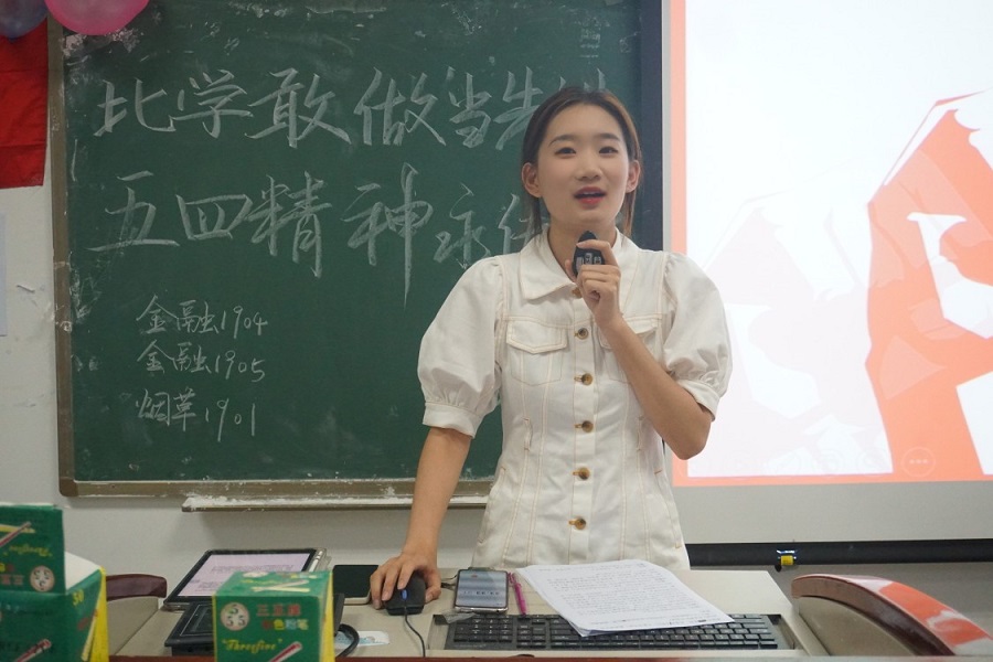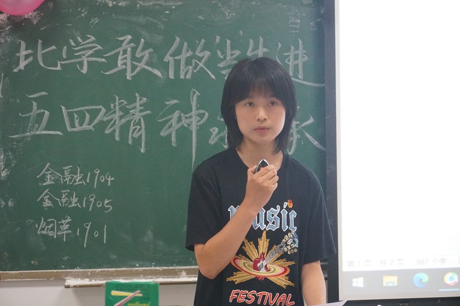 团日活动后期,由烟草1901的陈相伊同学进行了个人演讲,她从五四精神入手,告诉大家当代青年的五四精神是以爱国主义,振兴中华为核心的五四精神,青年人应当以实现祖国繁荣昌盛和民族伟大复兴为目标。