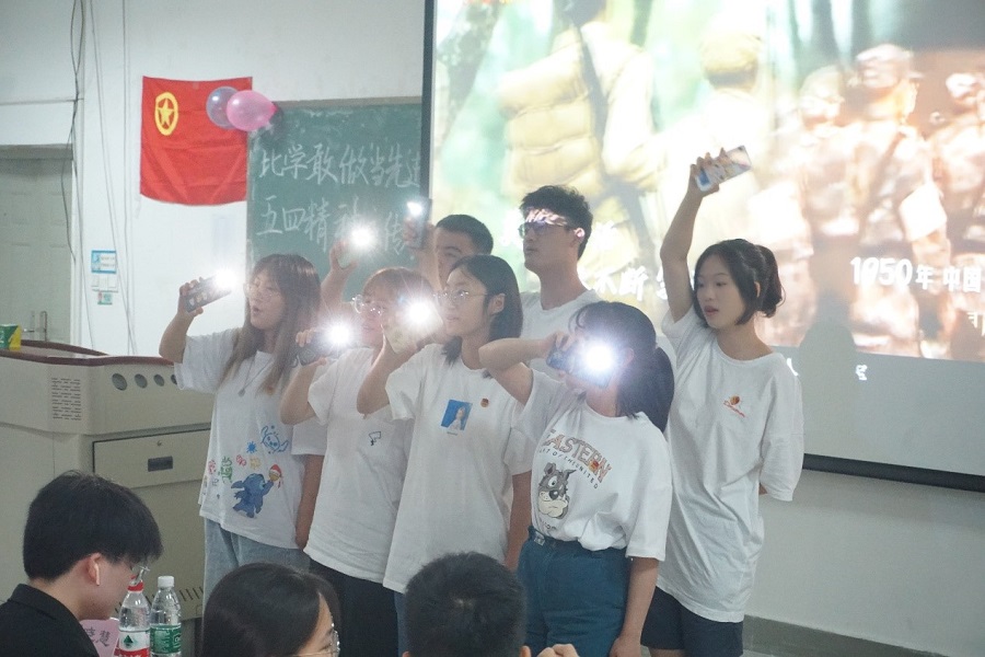 分享结束后,由三个班级同学一同准备的合唱歌曲《少年》将整场团日活动推向高潮。“我还是从前那个少年,没有一丝丝改变”,在整齐的歌声中,现场同学们纷纷拿出手机打开闪光灯,并随着节拍轻轻摇晃。