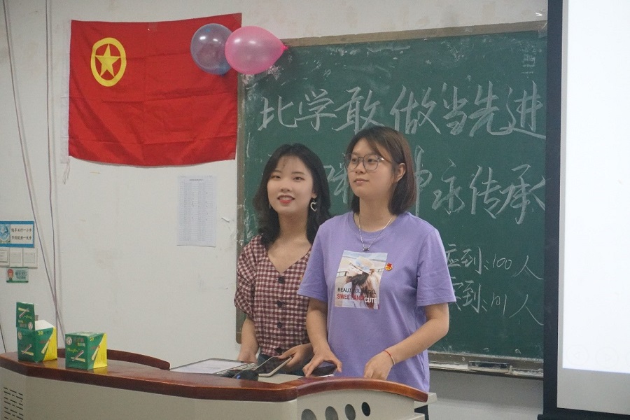 在准备阶段,纪检委员上台完成点到,随后在一阵阵掌声中主持人对到场嘉宾进行了简单介绍。三个班级整齐嘹亮的团歌声标志着活动正式开始,三分钟的青年大学习后,活动进入到视频学习与点评环节。这个环节主持人首先播放了预先制作剪辑好的视频,内容包含了近代中国的部分伟人英勇事迹和采访讲话,并邀请在场同学分享自己的感悟。“今天的我们能有幸在这里开展团日活动,我们应该感谢那些为国家无私奉献的先烈们,是他们撑起了中华民族的脊梁,才让中国一步步取得了今天的成就,我们青年人更应该承前启后,照亮中国的未来”,来自金融1905的沈宇轩激动地发表了自己的感悟。