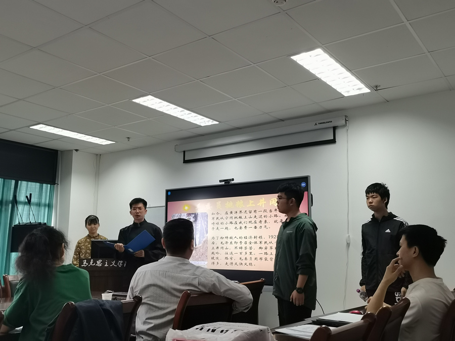 本次竞赛由中国近现代史纲要教研室主要面对本期《中国近现代史纲要》教学班级学生组织实施,分初赛(教案设计申报)与决赛(现场展示)两个赛段。前期初赛阶段,金融202003“微党课”小组在指导老师的建议下,结合所学知识,完成《井冈山:星星之火,从这里燎原》教案,并顺利入围决赛。