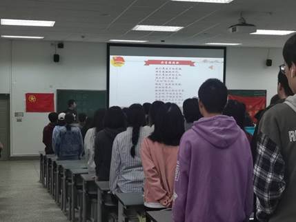 在全体齐唱团歌之后,主持人对党的历史上重大事件进行了提问,同学们对党史进行了深入学习。“从党的光辉历史中我们能够汲取强大的信仰力量。中国共产党因信仰而生,因信仰而发展强大。”经济202001班曾海美同学回答到,“无论过去、现在还是将来,对马克思主义的信仰,对中国特色社会主义的信念,对实现中华民族伟大复兴中国梦的信心,都是指引和支撑中国人民站起来、富起来、强起来的强大精神力量。”