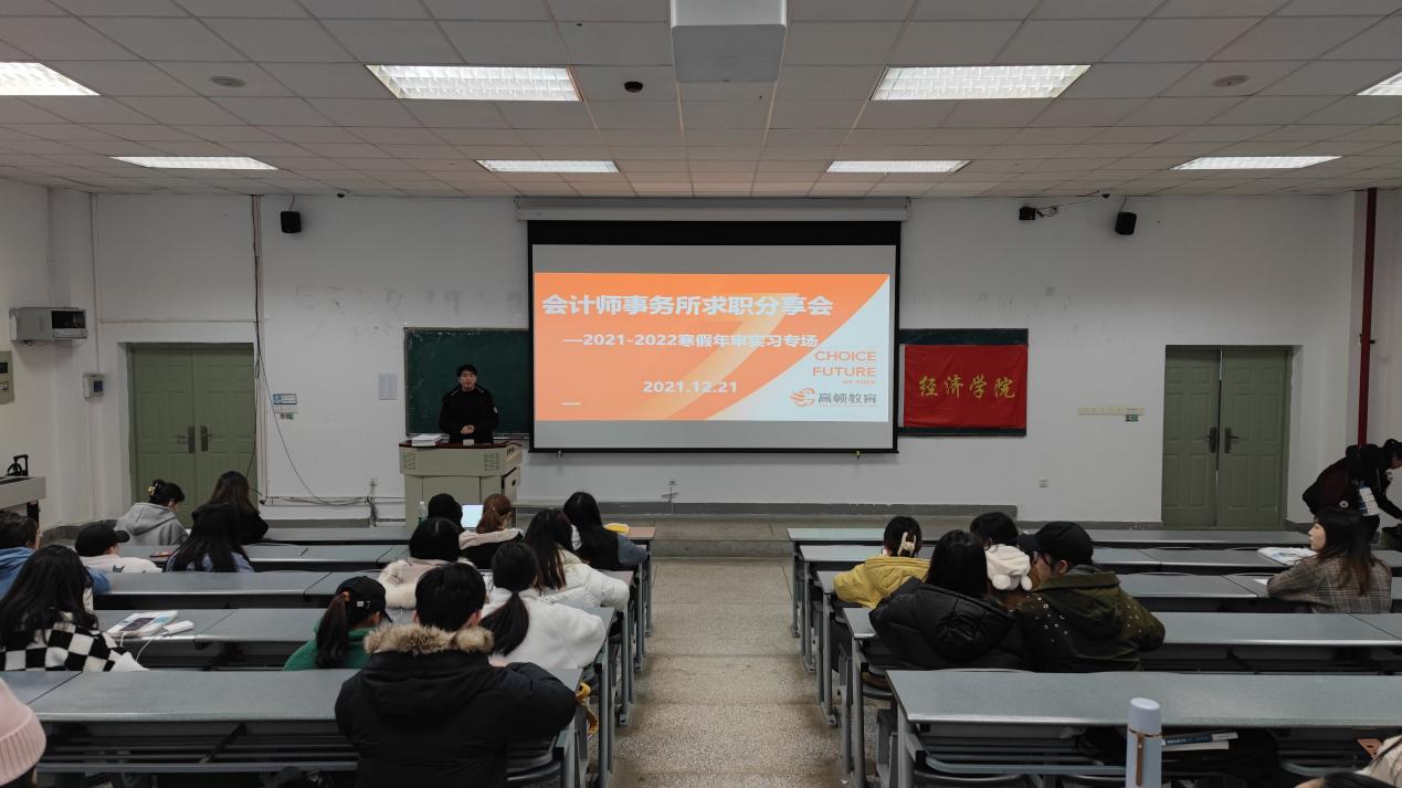 为帮助同学们更好地规划自身未来的职业发展,了解事务所就业情况,理清个人发展规划,12月21日下午,beat365官方网站在四教A105教室开展了“经赢未来--事务所求职分享会”,高顿教育罗凯老师(曾任普华永道会计师事务所审计经理助理,现任高顿教育CDC职业发展中心四川区域负责人)为beat365官方网站的学子进行事务所相关信息的分享。