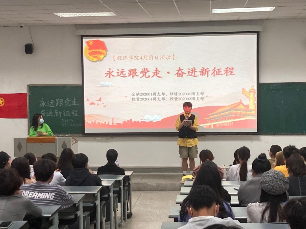 为迎接党的二十大的召开,动员团员牢记青年使命,传承发扬团的精神,带领团员青年学习团史,鼓励其坚定理想信念,金融202001团支部联合经济202001团支部、投资202001团支部、投资202002团支部召开了“永远跟党走,奋进新征程”主题团日活动。365官网张帮正老师、林桐老师、团委第一副书记唐晓臻与四支部全体成员参与了会议。
