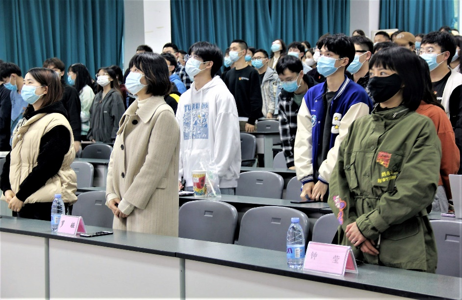 全体同学在主持人带领下齐唱团歌,倾听青马学员分享,了解优秀青马学员事迹,并展示了支部同学微团课学习成果。同学还观看了《把握机遇,奋进青春》微视频,团日活动的气氛逐渐热烈起来。随后,同学们开展了“百年正青春,奋斗新征程”活动串烧,以新闻联播的形式,在两位广播员的带领下,观看了国旗下演讲,分享了青春志愿故事。接着以知识问答的形式,帮助全体同学温习团史知识。