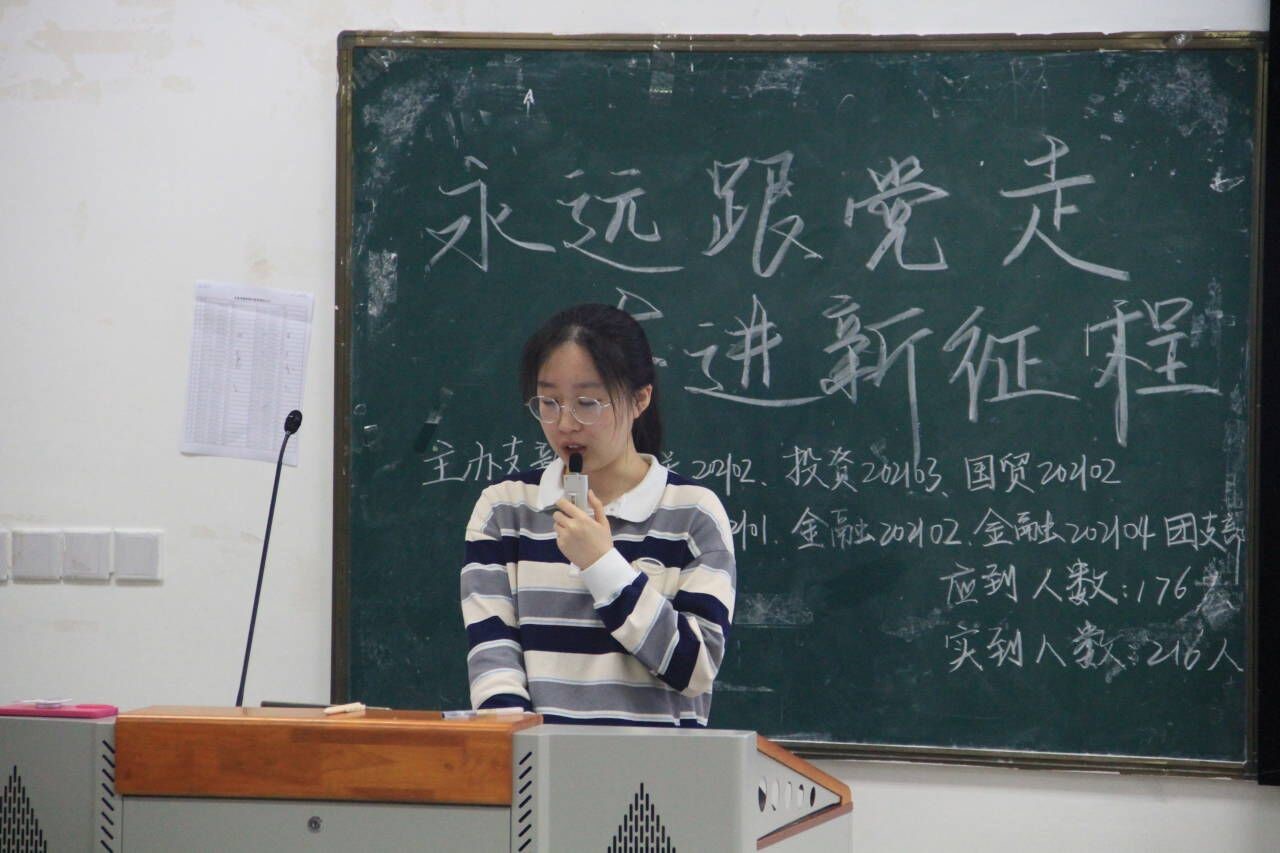 四月二十日中午12:30—13:30,由金融202101团支部,金融202102团支部,金融202104团支部,国贸202102团支部,投资202103团支部及经济(联合)202102团支部联合举办的“永远跟党走,奋进新征程”主题团日活动在成都校区4A106成功举办。到场嘉宾有国贸202102支部班主任助理黄越鑫,金融202102支部班主任助理马宪瑶,金融202104支部班主任助理刘博文和经济(联合)202102支部班主任助理李相星。为积极响应学校疫情防控要求,此次活动采用了线上线下结合的形式,调动了参与支部全体团员青年,参与本次团日活动的人数达240人。