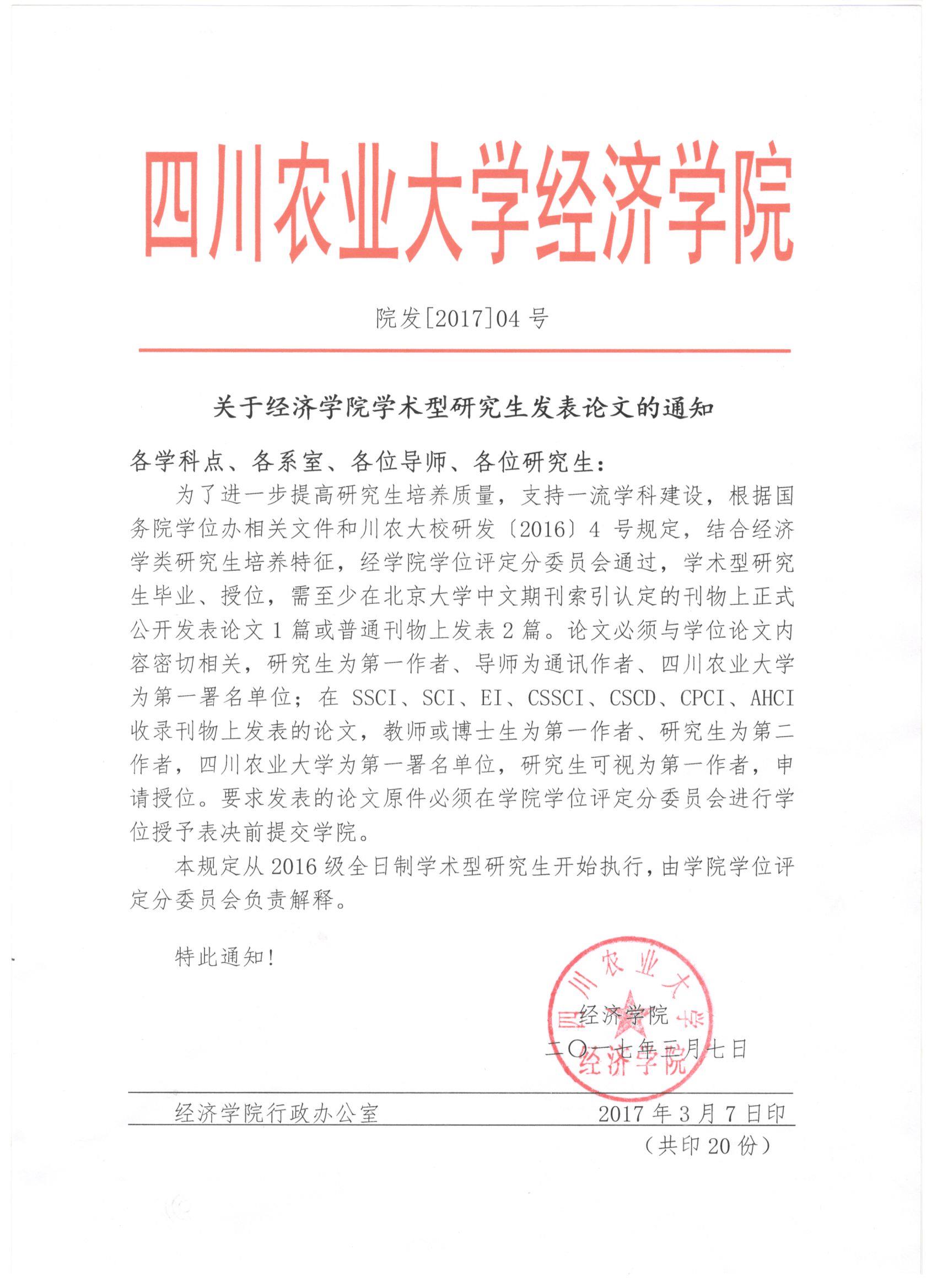 院发【2017】4号 关于beat365官方网站学术型研究生发表论文的通知