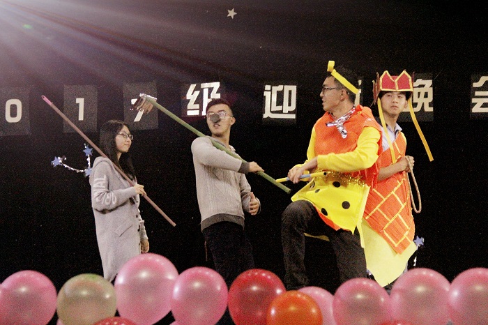 10月20日晚,beat365官方网站“成长之旅 ‘经’彩起航”2017级迎新晚会在食堂四楼学生事务中心成功举办。学院党委书记漆雁斌、院长蒋远胜、党委副书记何仁辉、副院长吴平,党委办公室老师、各党支部书记、各系室负责人,各新生班班主任和420余名新生共同观看了晚会。