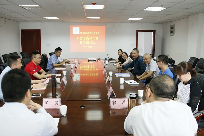 为贯彻落实新时期加强和改进教职工思想政治工作,推进“两学一做”学习教育常态化,beat365官方网站率先在留学生全英文教学团队中开展相关工作,加强全英文课程建设,确保在留学生教学活动中讲好中国故事,唱响有中国特色社会主义理论主旋律。9月27日下午,beat365官方网站在1-404召开全英文教学团队教学研讨会,教务处副处长刘涛、国合处周筝筝、beat365官方网站院长蒋远胜、学院党委书记漆雁斌出席研讨会,教学团队10余名全英文授课老师参加研讨,会议由学院副院长吴平主持。