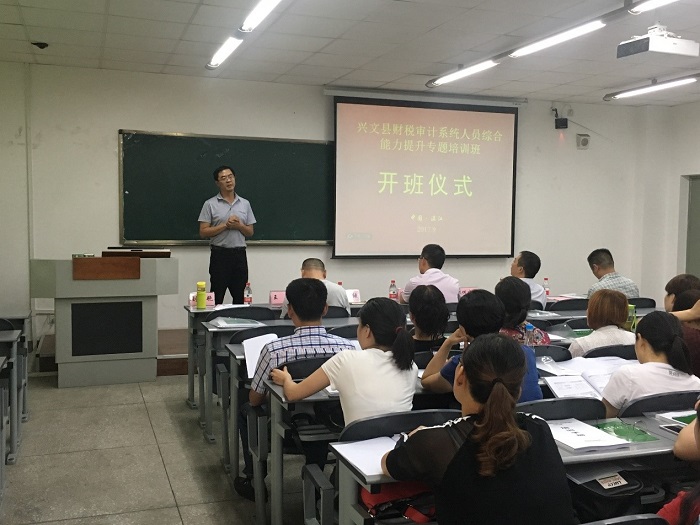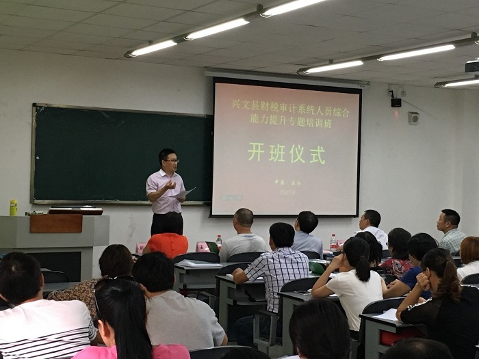 9月18日,由beat365官方网站金融系承办的兴文县财税审计系统人员综合能力提升专题培训班第三期在成都校区开班,来自兴文县财政局、国税局和地税局的73名财税一线工作人员将在365官网开展为期5天的培训学习。兴文县财政局局长罗继、地税局局长何建华、地税局党委书记张锐、国税局副局长王洪,学院党委书记漆雁斌、金融学系系主任刘艳等出席开班典礼。开班典礼由金融学系系主任刘艳主持。