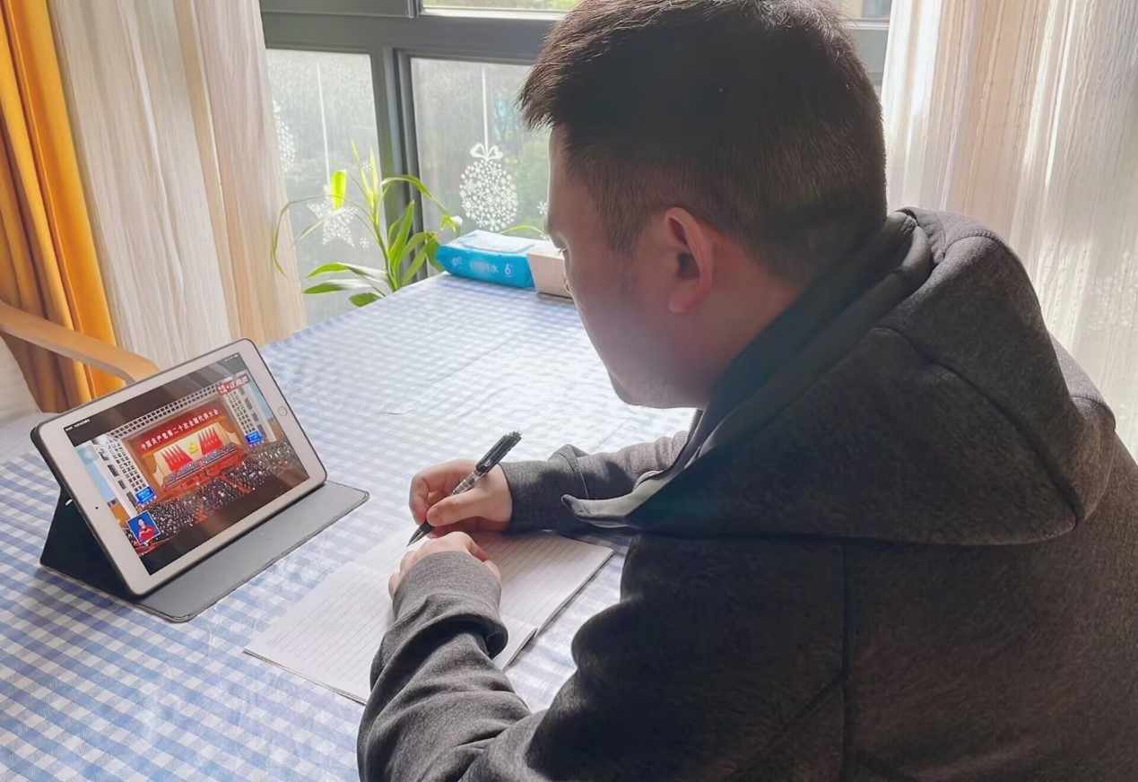 同学们纷纷表示,党的二十大是在全党全国各族人民迈上全面建设社会主义现代化国家新征程、向第二个百年奋斗目标进军的关键时刻召开的一次十分重要的大会。习近平总书记作的报告全面回顾了过去五年的发展成就和新时代十年的伟大变革,描绘擘画未来发展的美好蓝图,站位高远、思路明晰、落点实在,鼓舞人心、催人奋进。大家一定切实增强“四个意识”、坚定“四个自信”、做到“两个维护”,紧密团结在党中央周围,坚定信心、同心同德,埋头苦干、奋勇前进,为全面建设社会主义现代化国家、全面推进中华民族伟大复兴而团结奋斗。