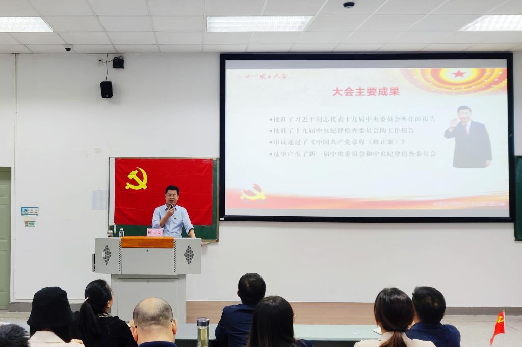 11月1日下午,党的二十大精神专题学习辅导报告会在4A306教室召开,报告会邀请到四川省委宣讲团成员、我校马克思主义学院党委书记杨世义做专题辅导,学院在家党委委员、纪委委员,党群行政党支部、区域经济与金融研究所党支部、经济学教工党支部、金融学教工党支部、国贸教工党支部五个党支部的教职工党员,学院2022年下半年入党积极分子培训班全体学员,共200余名师生党员、入党积极分子聆听了专题报告。365官网致公党党员康明惠博士列席报告会。