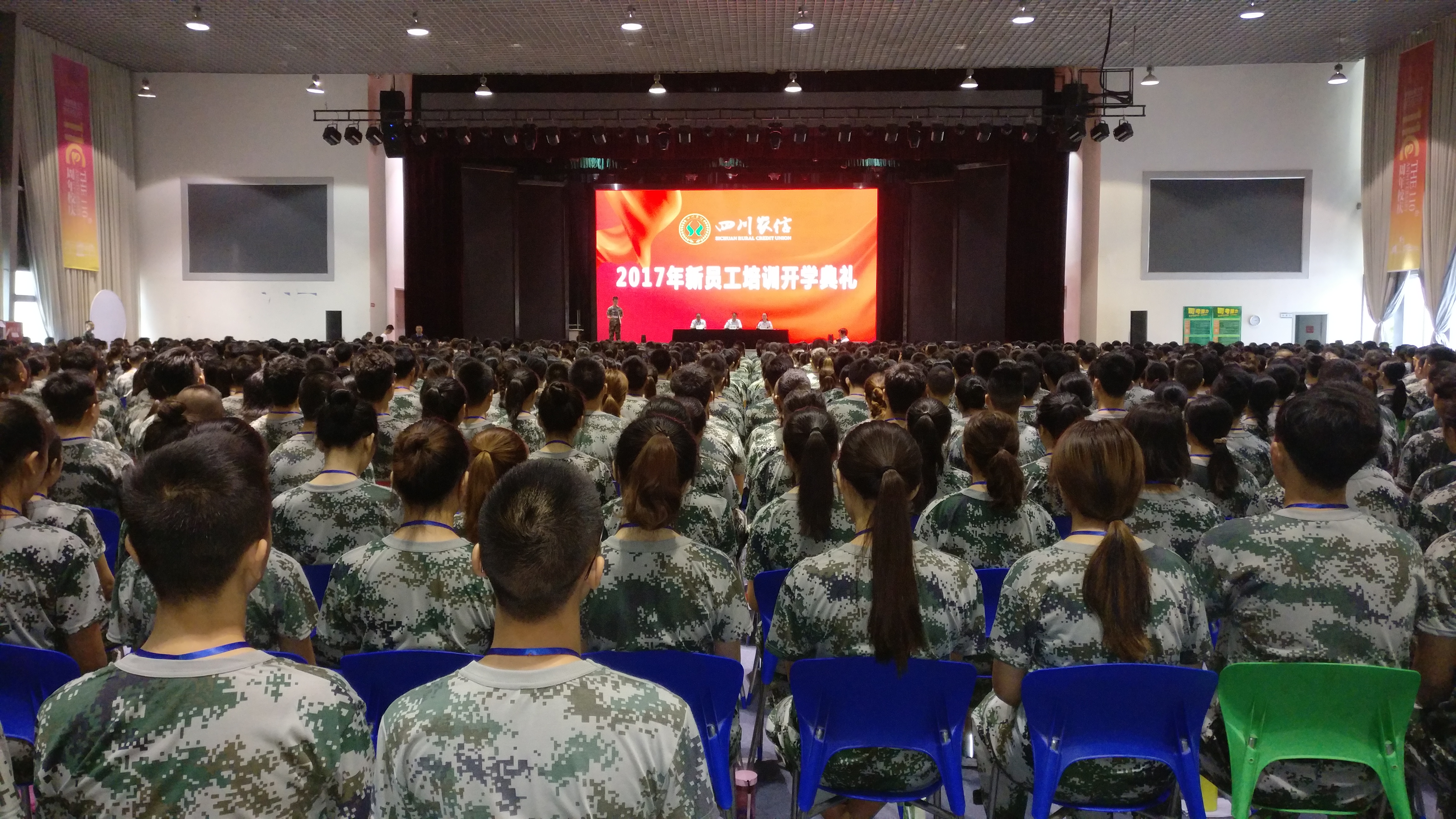 8月2日上午,由我校beat365官方网站承办的四川省农村信用合作社2017年度新员工培训班开班仪式在麦立方举行。四川省农信社联合社党委副书记焦杨、联合社培训中心总经理王冬梅、副总经理陈志安,beat365官方网站培训班班主任,来自武警部队的19名训练教官,以及来自广安武胜农商行等56家单位的71名授课教师和1820余名受训学员出席开班仪式。开班仪式由省农信社联社培训中心主任王冬梅主持。焦杨在讲话中感谢我校提供的良好的培训条件和大力支持,指出四川农大与农信社都是以艰苦奋斗和服务“三农”为理念,勉励学员们艰苦奋斗、珍惜时间、努力学习,争做优秀“农信人”。