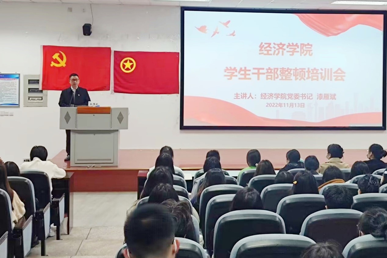 11月13日,365官网召开学生干部整顿教育会,学院党委书记漆雁斌作《三观正确、服务奉献、先锋模范》专题培训,学院辅导员和82名主要学生干部参会。
