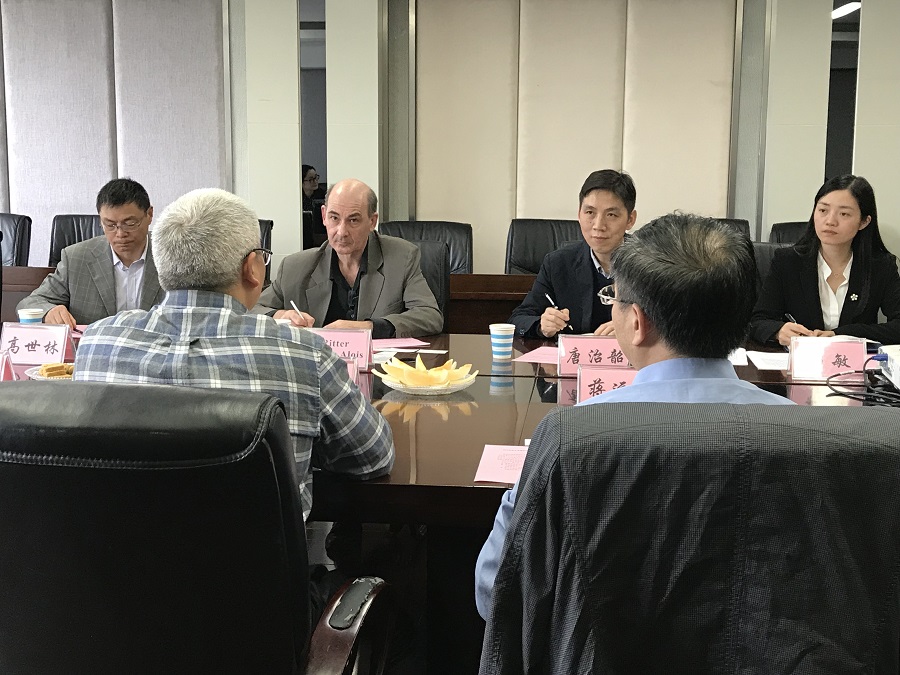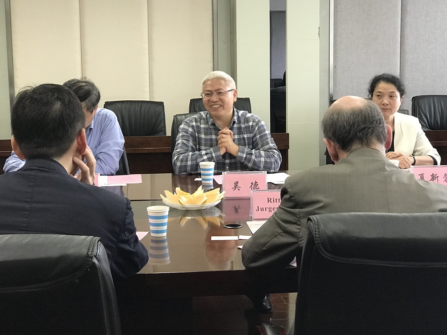 吴德代表学校致欢迎辞,并向来宾介绍了学校、学科发展和国际合作的基本情况,也表达了学校对于国际合作大力支持的决心。蒋远胜向来宾介绍了中心的发展,特别是对德政党政治、产业与经贸、文化教育交流等做了详细介绍,表达出更广的合作意愿。Ritter Jurgen Alois和唐治韶处长对我校取得的成绩给予了高度肯定。唐处长简要介绍了中德农业中心的基本情况,期望双方在未来能取得更多的合作和更大的成果。会上,双方就本年6月的中德农业企业对话研讨会和农业论坛展开了具体的洽谈。
