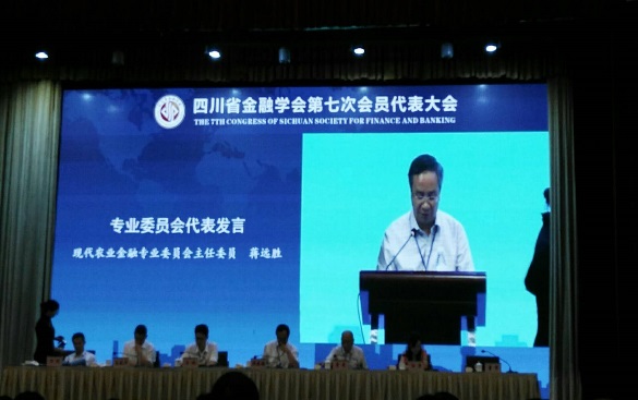 院长蒋远胜代表四川省金融学会现代农业金融专委会汇报专委会成立两年来围绕构建“产学研”融合的现代农业金融研究平台和新型智库、通过与农村金融产业深度融合锁定学术研究问题导向、发挥高校学术优势提升金融行业应用研究水平、力推产教融合为四川农村金融培养高素质人才等方面开展的工作进展和取得的成绩。专委会工作获得金融学会领导的肯定。