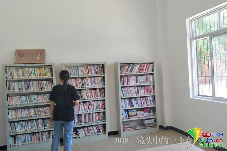 图为参观太安村图书阅览室。 中国青年网通讯员 杨璐菡 摄