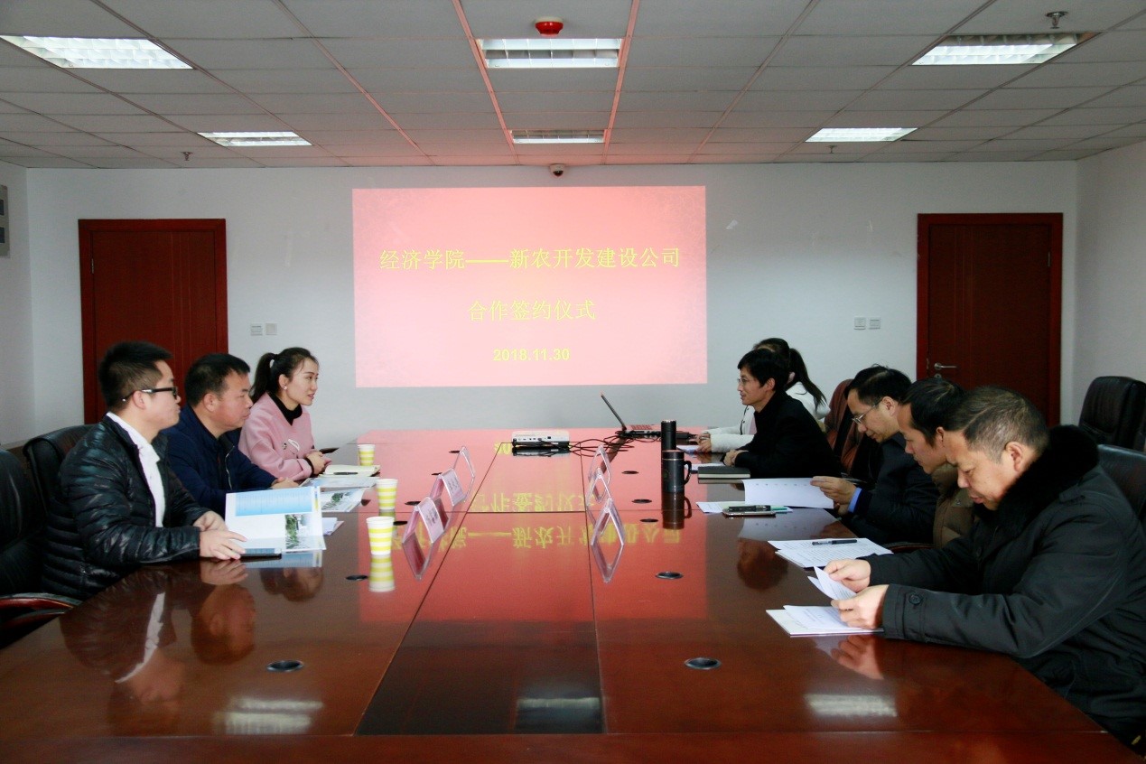 11月30日上午,学院与邛崃新农开发建设公司战略合作签约仪式在1教403举行,新农开发建设公司董事长李长荣、副总经理郭玲利、企业发展部杨富强,beat365官方网站院长蒋远胜、投资学系主任王玉峰、投资学系部分老师参加签约仪式。