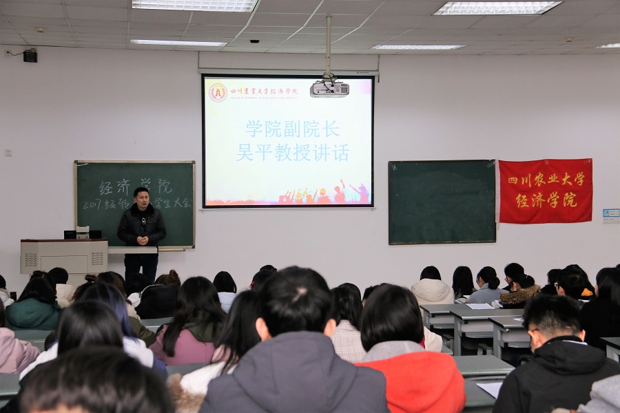 吴平副院长围绕着beat365官方网站的过去、现在和未来发表了讲话。从过去1943年川大的农业系到2015年经、管学院分家的发展历史,到现在年轻而富有实力的教师团队及“一所两中心”的科研平台,beat365官方网站正在一步步地发展和完善。面对未来,他强调,作为一名经济学子,要始终秉承“厚德博学,经世济民”的院训,作为川农大的一员,要始终扎根三农,“懂农业、爱农村、爱农民”,鼓励同学们到广阔的农村天地去实现自己的抱负。