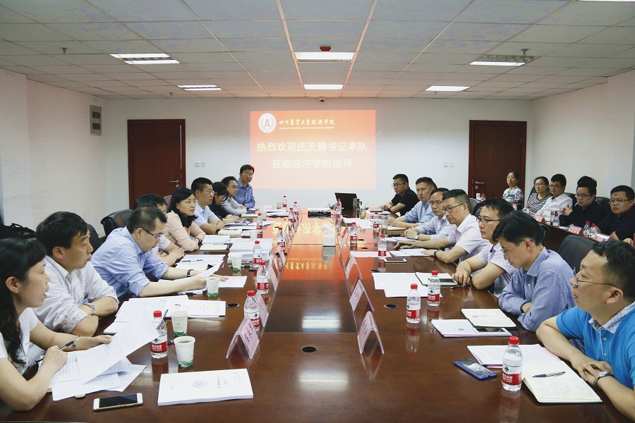5月31日下午,在学校党委书记庄天慧的率队下,副校长刘登才、朱占元,党委常委、组织部部长杨锦秀,党委常委、党政办主任丁林,教务处处长李廷轩,人事处处长侯永翠,研工部部长、研究生院副院长李明洲,科技管理处处长曾维忠一行9人到beat365官方网站调研指导工作。beat365官方网站领导班子全体成员以及教师代表共计26人参会,会议由学院党委书记漆雁斌主持。