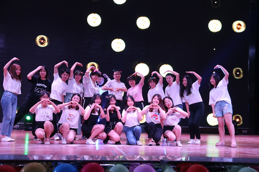一教421党委办公室是同学们平时常去的地方,在这里发生了很多的故事。由毕业生主干代表带来的歌舞《1-421的故事》生动的再现了毕业生主干们与老师一起工作、奋斗的过往,学院党委副书记、纪委书记何仁辉与全体辅导员老师也参与了此次舞蹈表演,带给毕业生惊喜和感动。 随后金融201501班代表带来原版歌曲《拜拜啦徐慧丹》,歌声中满含对班级同学、老师的不舍与感恩。各毕业班班主任不仅为大家带来鼓励与祝福的寄语视频,更以全新的姿态走上舞台,SHOW出新风采,引发台下同学的欢呼和共鸣。