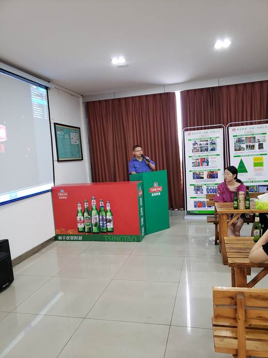 随后,大家进入了“啤酒屋”会议室,由徐经理给大家介绍了青岛啤酒的发展历程、企业文化、产品分类、公司国际贸易现状等,特别强调了企业“以质取胜”的宗旨。