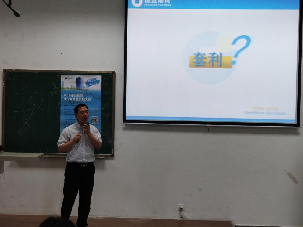 第四场讲座于6月21日在成都校区第四教学楼A108举行,由beat365官方网站投资学系李松主持,投资学系部分老师以及金融学、投资学2016级部分同学参加了本次讲座。讲座再次邀请国金期货有限责任公司研究所何宁所长、戴小红主任以及人力资源部金爱玲女士三位业界专家走进“金融衍生品设计与仿真交易(实践教学)”课堂,为师生讲授了期货套期保值和套利交易相关专业知识、操作实务,期货行业人才需求状况以及大学生职业生涯规划等内容。整场讲座内容丰富、理论扎实、案例生动、气氛热烈,参会同学纷纷表示受益匪浅。