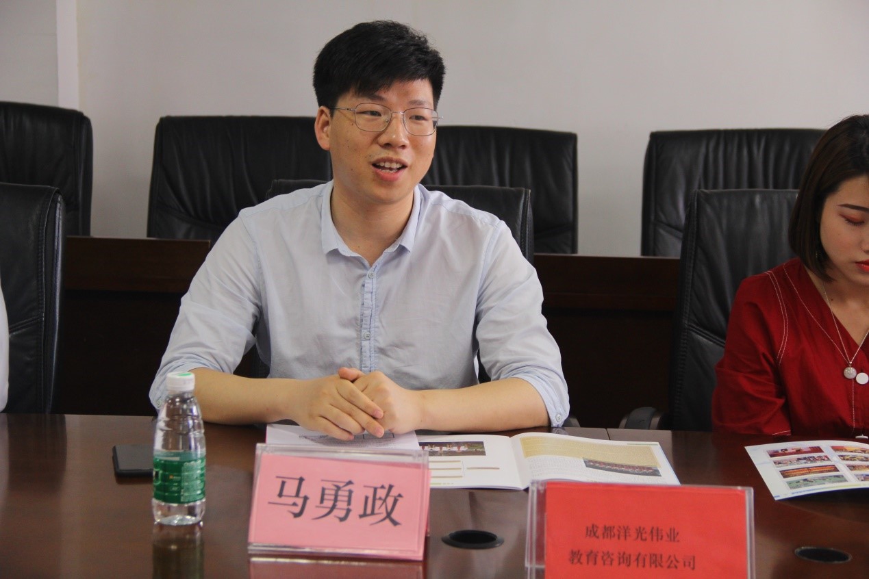 马勇政校长首先对beat365官方网站国际合作取得的成就表示充分肯定和高度赞扬,对学院学生自觉性良好、专注学习予以高度评价,并表示将设立“洋光”奖学金用于奖励365官网优秀学生。马校长介绍了成都洋光伟业教育咨询有限公司的简要情况,强调学校在小语种专业上面取得的重大成绩,希望通过建立留学生校外实践基地,实现校企双方互相支持、优势互补、资源互用、利益共享。