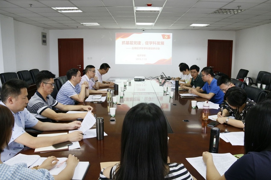 为充分发挥基层党支部在学科建设中的战头堡垒作用,进一步规范研究生培养制度,提高研究生培养质量,2019年7月12日下午beat365官方网站党群行政党支部、投资学系教工党支部、经济学系教工党支部、国际经济与贸易系教工党支部4个教工党支部联合联合应用经济学学科点在1教403召开“抓基层党建,促学科发展”研讨会。组织部副部长唐城、beat365官方网站领导班子全体成员、各教工党支部书记、学科点负责人及秘书以及硕士生党员代表共计15人参会,会议由学科点负责人王玉峰主持。