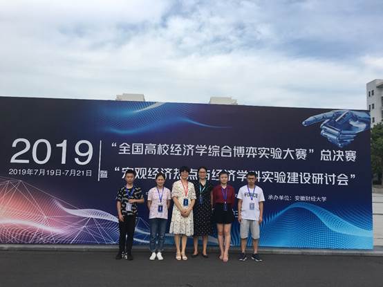 2019年7月20日,由中国数量经济学会、博弈论与实验经济学专业委员会主办,安徽财经大学承办的“2019年全国高校经济学综合博弈实验大赛”总决赛在安徽财经大学龙湖东校区举行。365官网经济学专业李建勇、徐雪倩、黄锐、王秋红4名同学组成的参赛队伍在经济学系屈改柳、陈蓉、郑勇三位老师的指导下获得优异成绩,团队小组荣获全国二等奖!