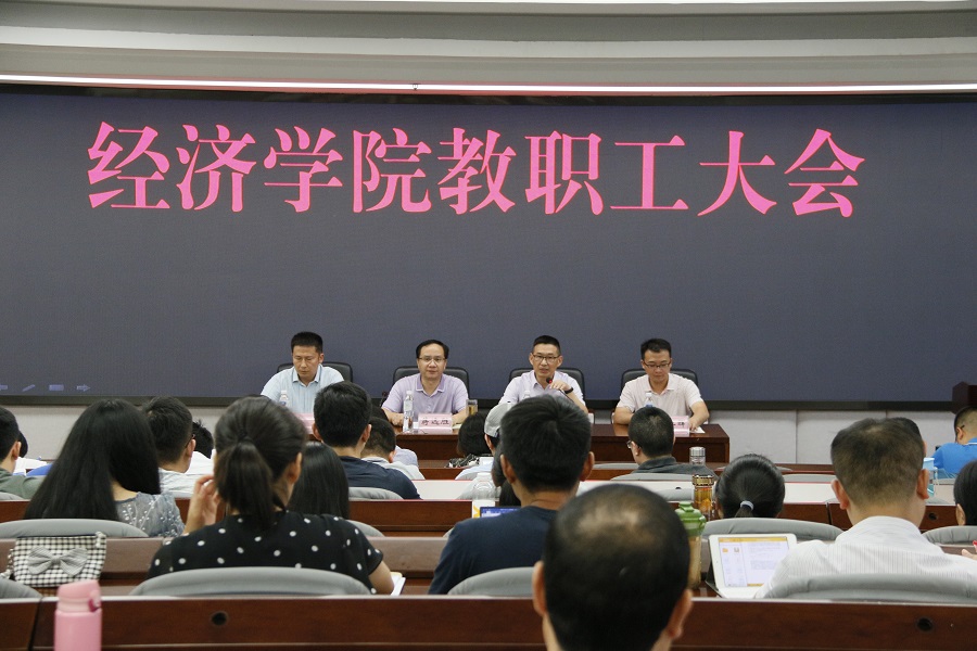 会上,院长蒋远胜代表学院领导班子感谢在假期冒着酷暑辛勤工作的教职工,传达了学校党委中心组(扩大)暨中层领导干部会议精神,并分析了当前beat365官方网站、经济学科发展面临的新形势。一是全球经济形势下滑、中美贸易摩擦升级,保持经济5%增长率的只有中国、印度、东盟5国三大经济体,这给我们的经济金融科学研究带来了新的课题,也给我们的学生就业带来了巨大的挑战。二是“一流学科建设”和“一流本科专业建设”是当前高校发展新的引擎和动力,也是学院当前和今后比较长一段时期的发展方向和工作遵循。三是学校领导班子处在新老交替的时期,年轻干部的补充将成为常态。四是在学院空间资源受限的情况下,继续推进实验室建设。五是高级职称晋升改革对青年教师成长利好。