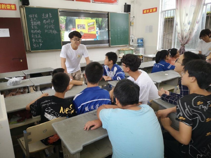 小太阳支教队前往陕西省安康市旬阳县铜钱关镇太山庙村,为当地孩子们带去一个有意义的暑假。团队有来自院流行舞团、足球队、篮球队等兴趣特长团队的成员,不仅各自“身怀绝技”,而且都有一颗热爱公益、热心志愿的心。除了为小朋友们进行课业辅导和开展丰富多样的课程外,小太阳支教队更是针对每一位孩子展开家访和情感陪护,走进每一位孩子的心灵,关注他们的小小世界,不让一位孩子掉队,不让一位孩子感到孤独。