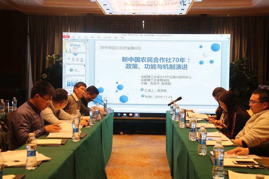 11月22日下午一点半,以“70年农村金融改革理论与实践”为主题的平行分论坛在费尔顿凯莱大酒店二号多功能厅成功举行。本次论坛由西南财经大学贾晋教授作为主讲人,成都理工大学刘后平教授作为评议人,出席论坛的嘉宾是来自成都农村产权交易所和来自雅安农商银行的领导等人。