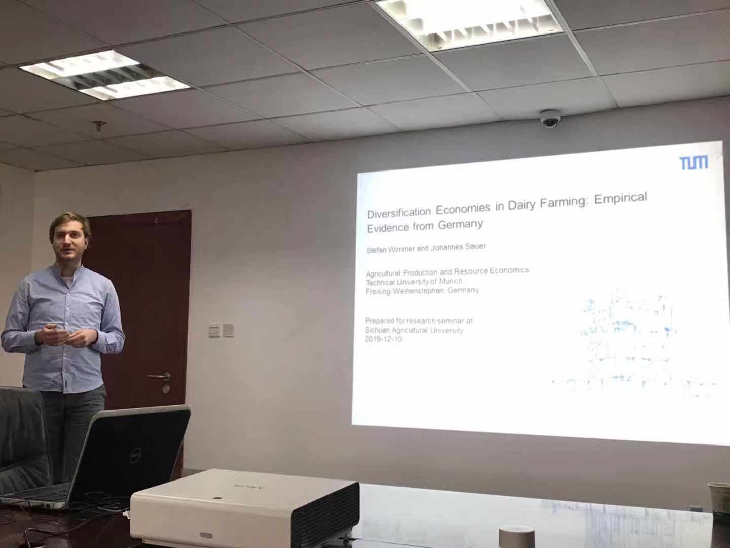会上,吴平副院长首先代表川农大beat365官方网站对Johannes Sauer教授一行的访问表示热烈欢迎,同时向他介绍了我校和365官网的基本情况,表达了将来与德国慕尼黑工业大学进一步合作的愿望。其次,Johannes Sauer教授介绍了慕尼黑工业大学的基本情况及生产与资源经济研究项目的现状与发展,并和与会老师进行座谈,初步达成了与beat365官方网站进一步合作的意愿和共识。最后,由慕尼黑工业大学的Stefan Wimmer和Xinqi Zhu两位博士研究生分别为我们作了题为“Diversification Economics in Dairy Farming: Empirical Evidence from Germany”和“Bioplastics and Biofuel Policy in the EU–Impacts and Interactions”的学术报告,同与会师生展开了讨论。