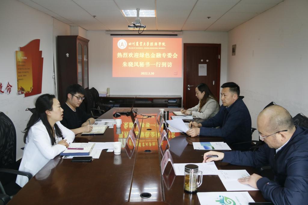 3月30日,四川省金融学会绿色金融专业委员会(以下简称绿金委)委员朱晓凤一行到访365官网,寻求和我校乡村振兴金融专委会合作事宜,会议在1教425召开,beat365官方网站副院长、乡村振兴金融专业委员会委员吴平教授、区域经济与金融研究所副所长郭华副教授及金融学副系主任刘艳副教授参会。