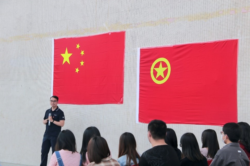 学习团史故事,牢记青年担当。马克思主义学院团员代表、学校第8期青马班学员张蒙茜进行国旗下的演讲,为同学们讲述了精彩的团史故事。在随后进行的“团史知识大比拼”中,现场气氛被推至高潮,同学们积极参加、踊跃回答,营造了浓厚的团史学习氛围。“以青春之我,创建青春之家庭、青春之国家、青春之民族”,在场团员共同唱响歌曲《青春》,嘹亮的歌声饱含着同学们对青春的热忱与信心,彰显了新时代研究生团员的风采。