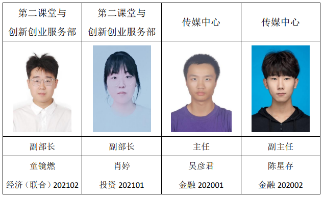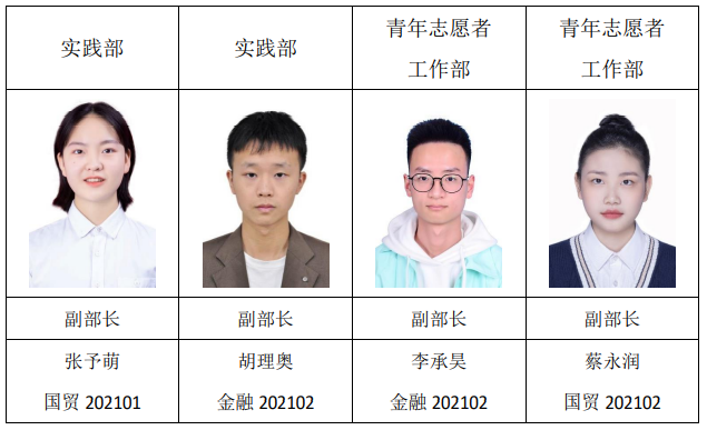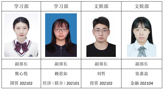经个人申请,学院资格审查,面试答辩,拟任以下同学为365官网第八届学生团体联合会主要学生干部,试用期3个月,现予公示如下: