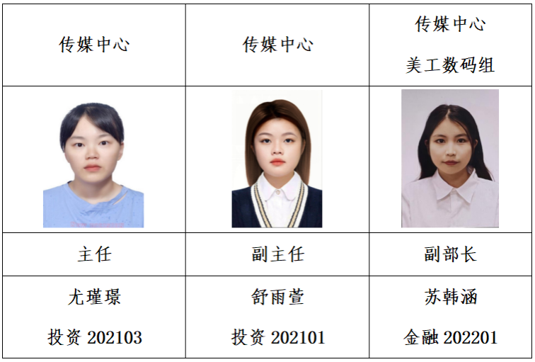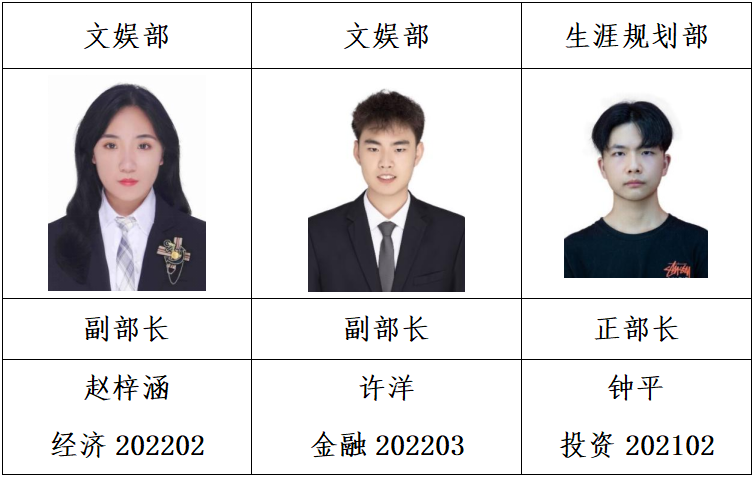 经个人申请,学院资格审查,面试答辩,拟任以下同学为365官网第九届学生团体联合会主要学生干部,试用期3个月,现予公示如下: