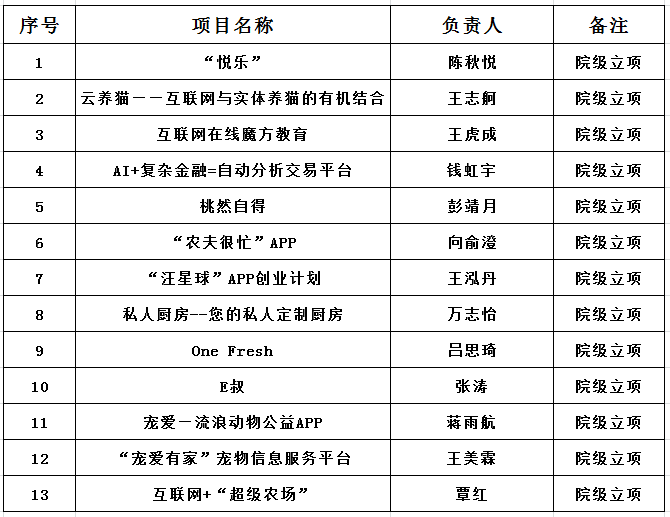 按照学校《关于开展第五届“互联网+”大学生创新创业大赛校内预选赛的通知》的相关要求,经团队自愿申请,学院组织评审,评选出13支院级立项团队。现予以公示,公示时间:2019年5月14日-5月17日,公示期间若有异议,请与beat365官方网站团委办公室陈老师联系,联系电话:028-86291370。